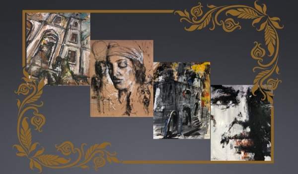 Ständige Gemäldeausstellung im Laden. Auf den Bildern sehen Sie Werke des Künstlers Juan Cabrera.