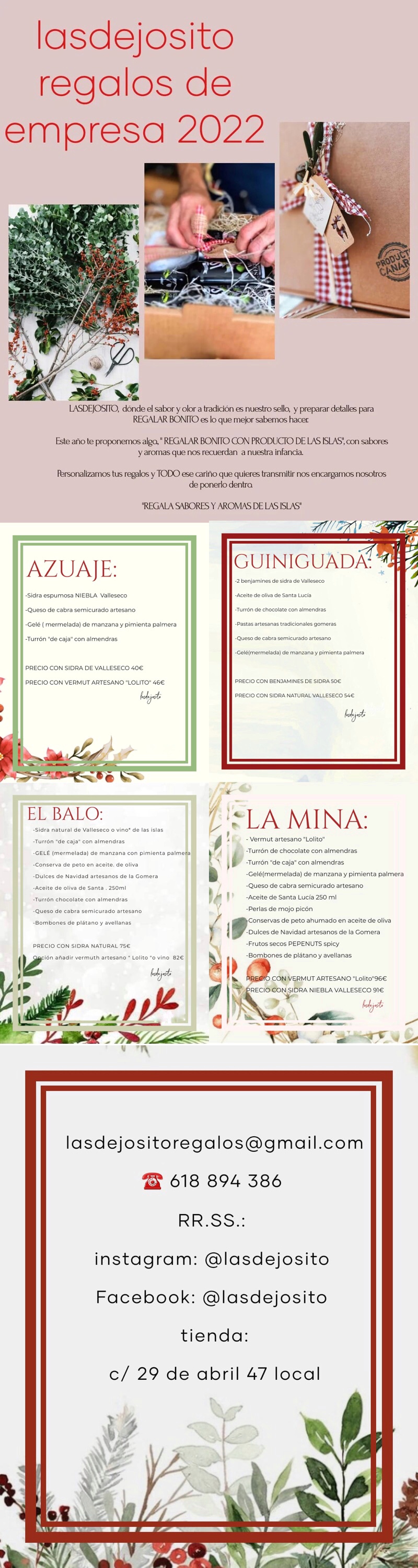 Seine Spezialität sind "Geschenke mit Herz", voll Geschmack... Aromen, die Sie noch nie probiert haben, von kleinen lokalen Produzenten, die Sie in großen Supermärkten nicht finden werden, daher sind sie exklusiv.